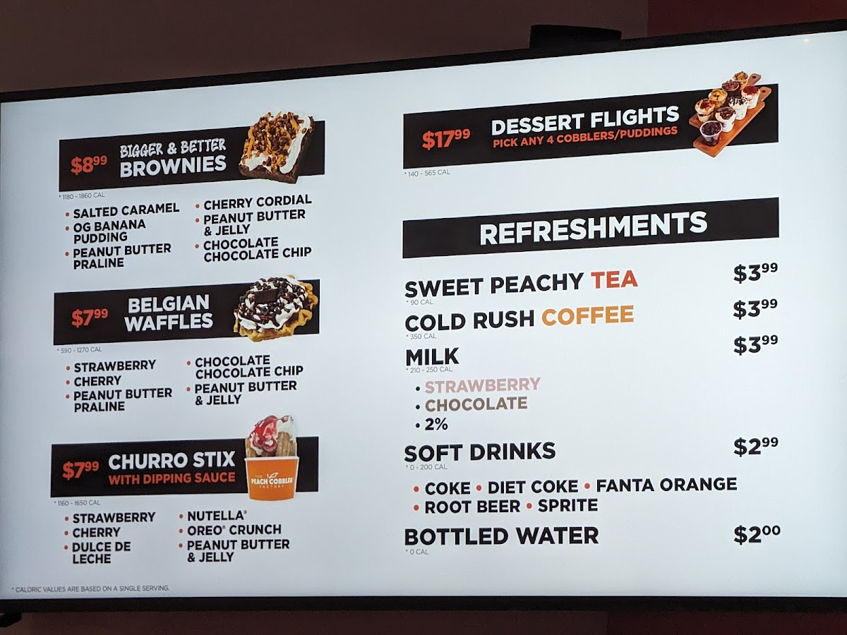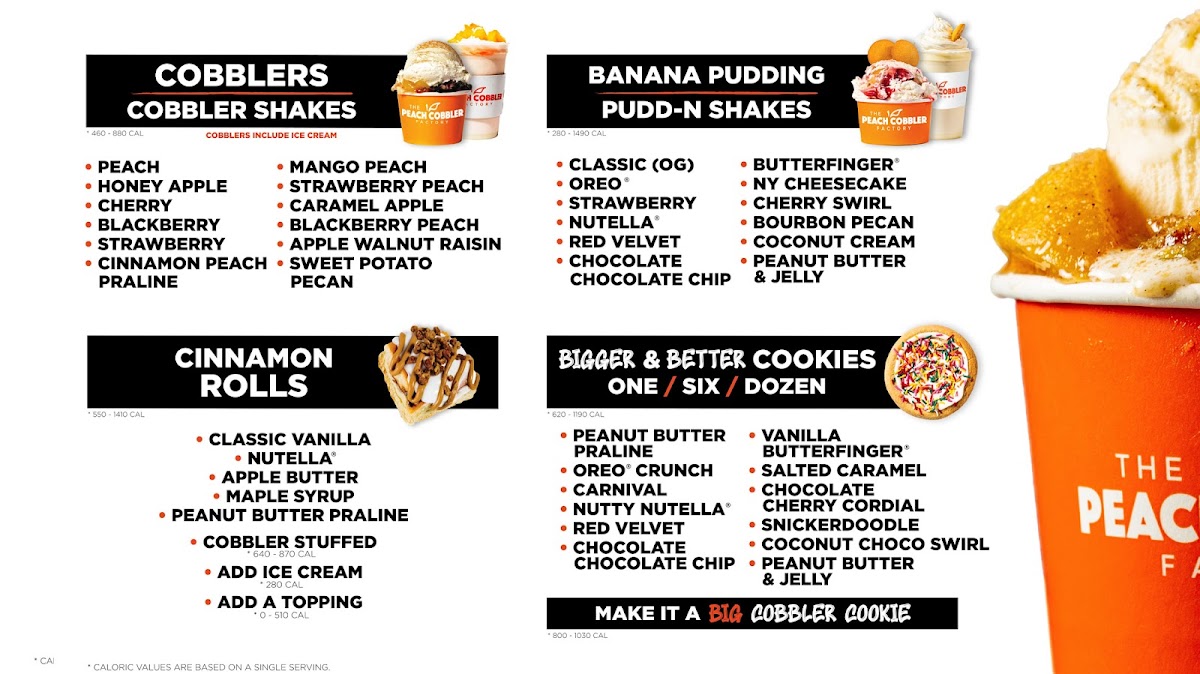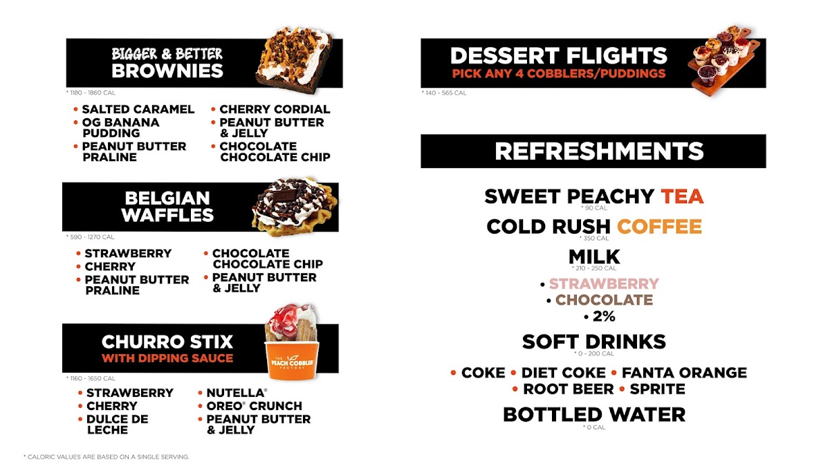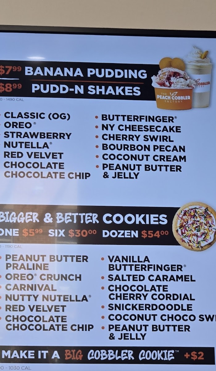 The Peach Cobbler Factory-Richardson is a dessert haven located in Richardson, TX, specializing in Southern-inspired comfort sweets with a modern twist. Their menu highlights an impressive variety of banana puddings, each thoughtfully crafted—from classic OG to indulgent Nutella and Bourbon Pecan flavors, all priced equally at $7.99. Equally enticing are their “Bigger & Better” brownies, featuring unique options like Salted Caramel and Peanut Butter Praline, offered individually or in half-dozen packs.